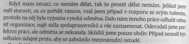 Takhle bys mohl dopadnout Firzene i ty, kdybys to uměl a ty češky odhalil: a tady autor přišel jen o ten čas, co věnoval rozkrývání organizace. Takovéhle zkušenosti tě potom silně znechutí.