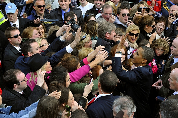 Ide o fotky z jeho vyletu po EU z poslednych dni, pozrite si dalsiu kde je zachyteny s ochrankou a znovu si vsimnite toho drsnaka z prvej fotky, co stal vlevo (z nasho pohladu).