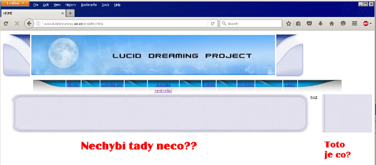 Takze ta stranka je opustena nikto ju neudrzuje takze tato tema je uplne zbytocna. Uz dlhsie mam dojem ze pises len aby si pisal.Původní stránky http://www.luciddreaming.wz.cz a informace na nich, jsou již zastaralé,tak sem rozhodl sepsat novou verzi.